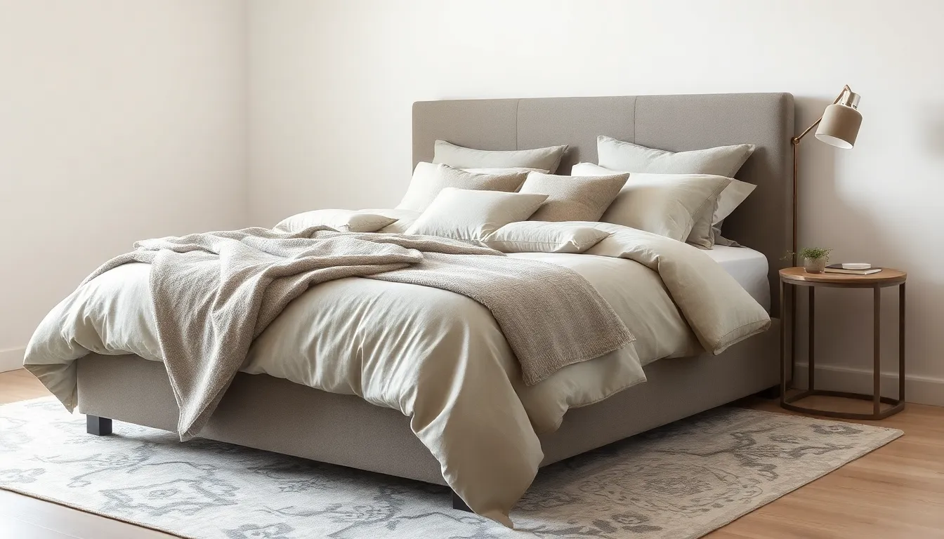 Linen and cotton remain popular choices for neutral bedding. These natural fabrics offer breathability, making them ideal for various climates. Cotton’s softness ensures a restful night’s sleep, while linen provides a unique, relaxed aesthetic. Both materials also possess durability, holding up well against frequent use and laundering. Layering cotton and linen bedding can create an inviting atmosphere, inviting warmth and comfort into the bedroom. Textures from these fabrics add dimension, contributing to a cozy yet stylish environment.