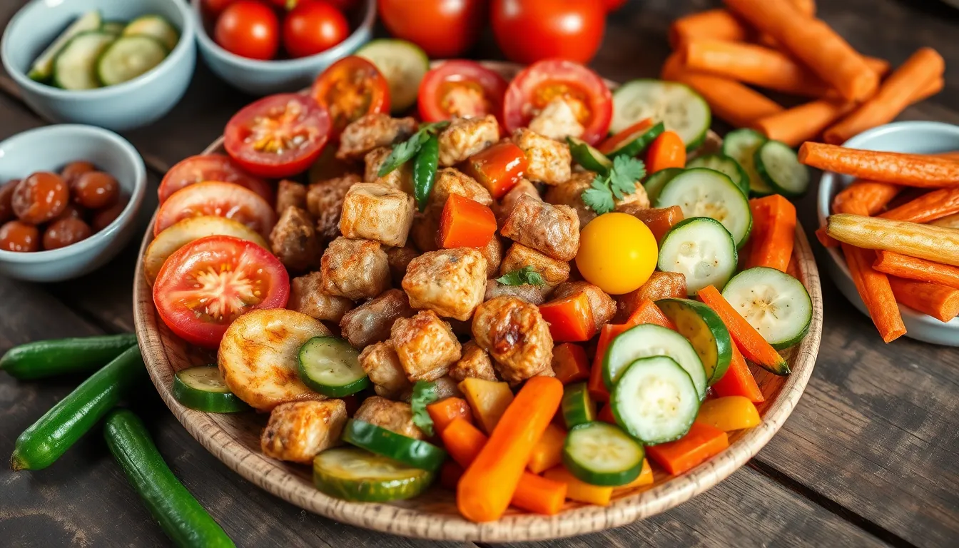 Fresh vegetables serve as a vibrant and crisp addition to zhashlid. Tomatoes and cucumbers provide a refreshing contrast, while radishes add a little bite. Grilled bell peppers deliver a smoky flavor that complements the marinated meat. You might also include onions, either raw or grilled, to enhance the savory profile. Herbs like cilantro and parsley brighten the plate and offer aromatic undertones. Featuring these fresh elements creates a balanced meal, appealing to both sight and taste.